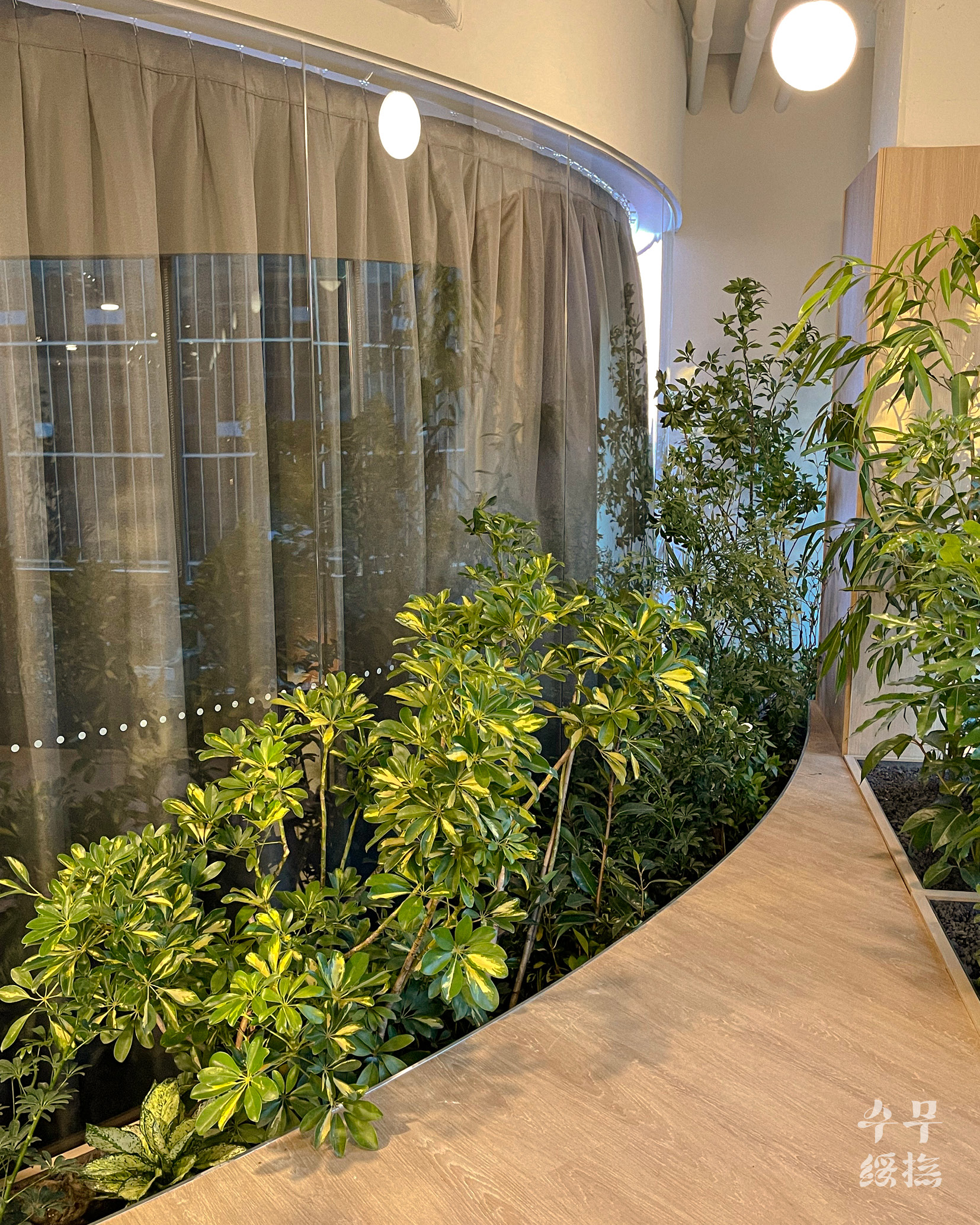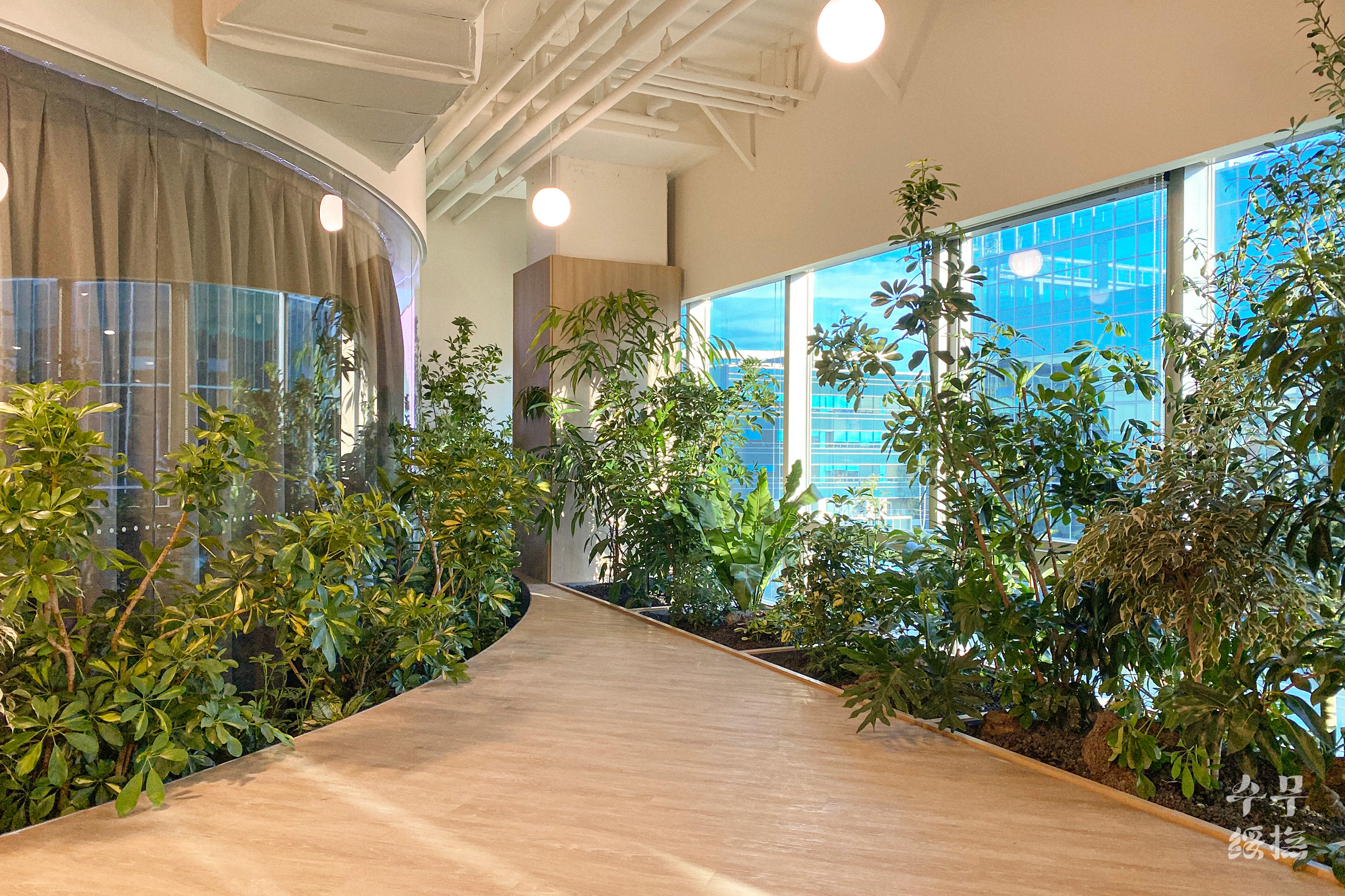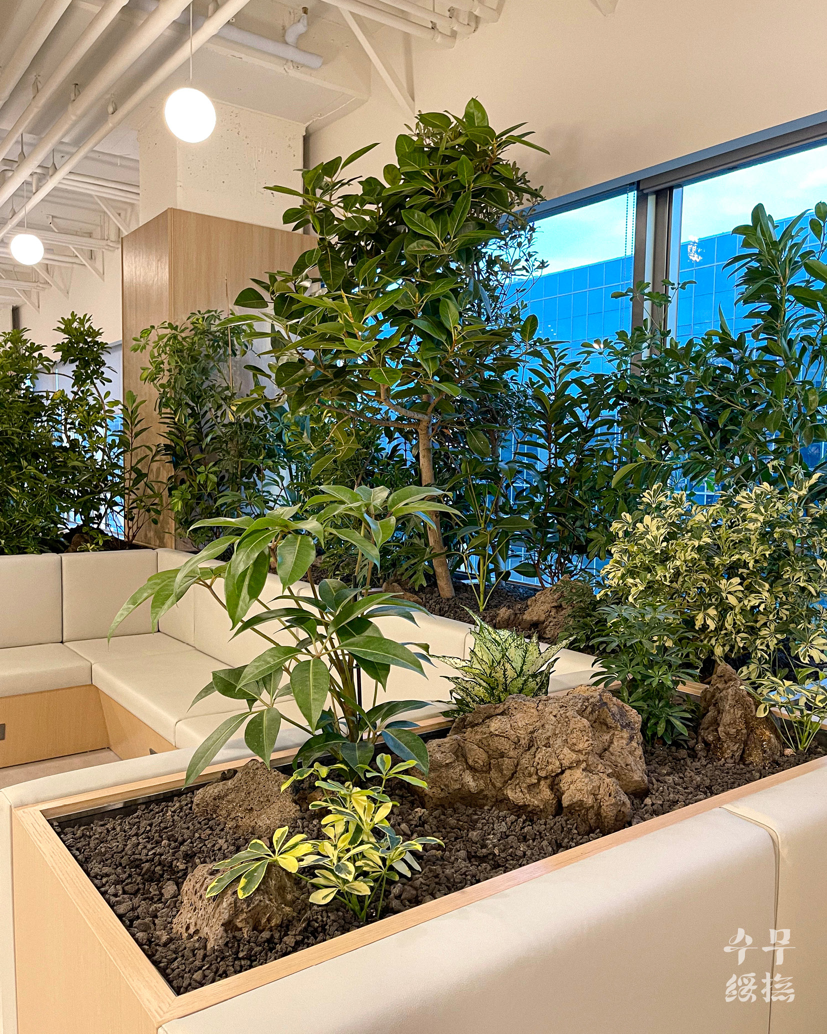 8층 휴게공간은 직원들이 휴식함과 동시에 함께 어울릴 수 있는 공간으로, 오피스와 공간 분위기를 연결시켜 차분하고 편안한 공간으로 만들고자 했습니다. 플랜트를 이용한 차폐를 통해 편안하게 휴식할 수 있도록 유도하였고, 내추럴 한 수종을 사용하여 실제 자연과 같은 분위기로 연출하였습니다.