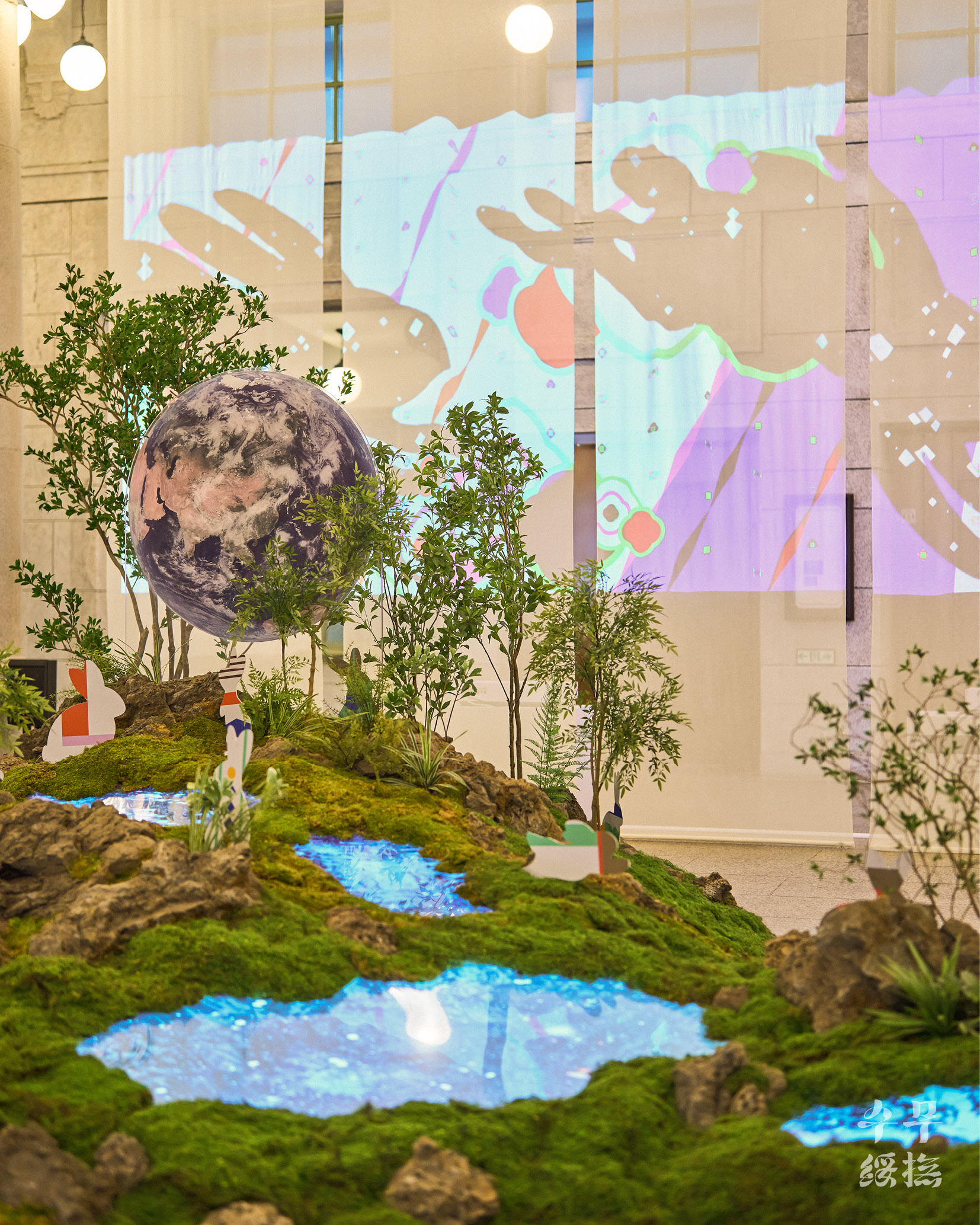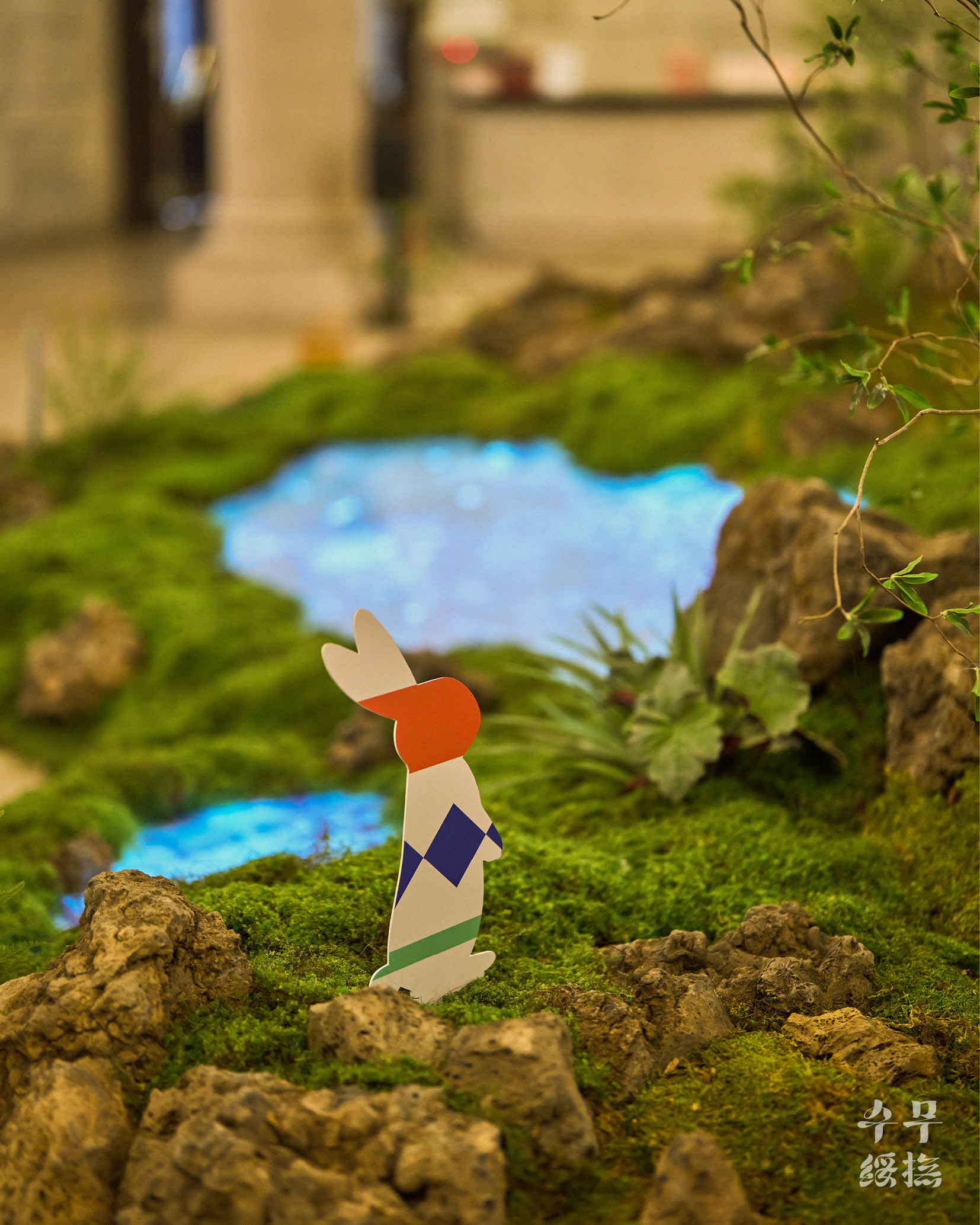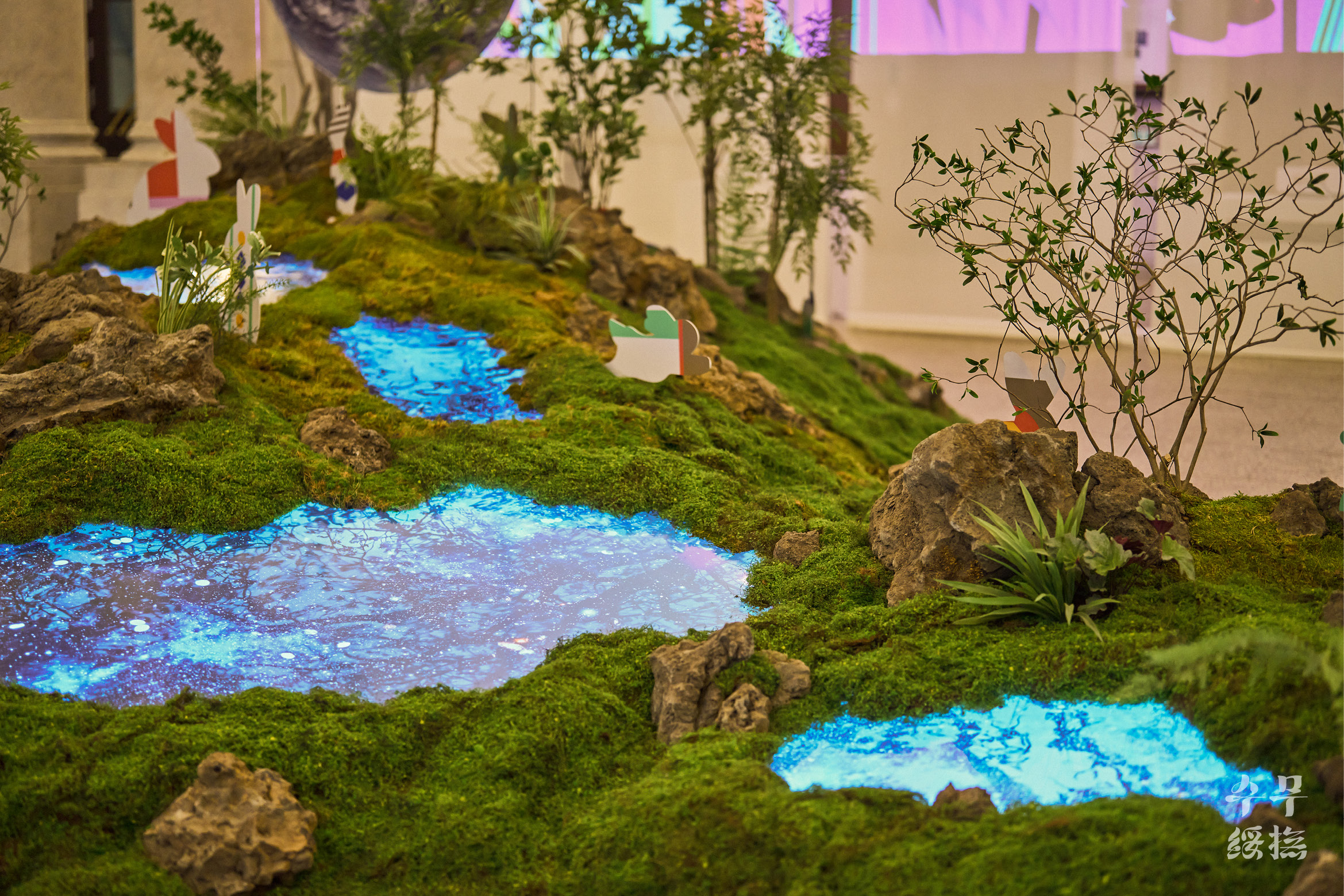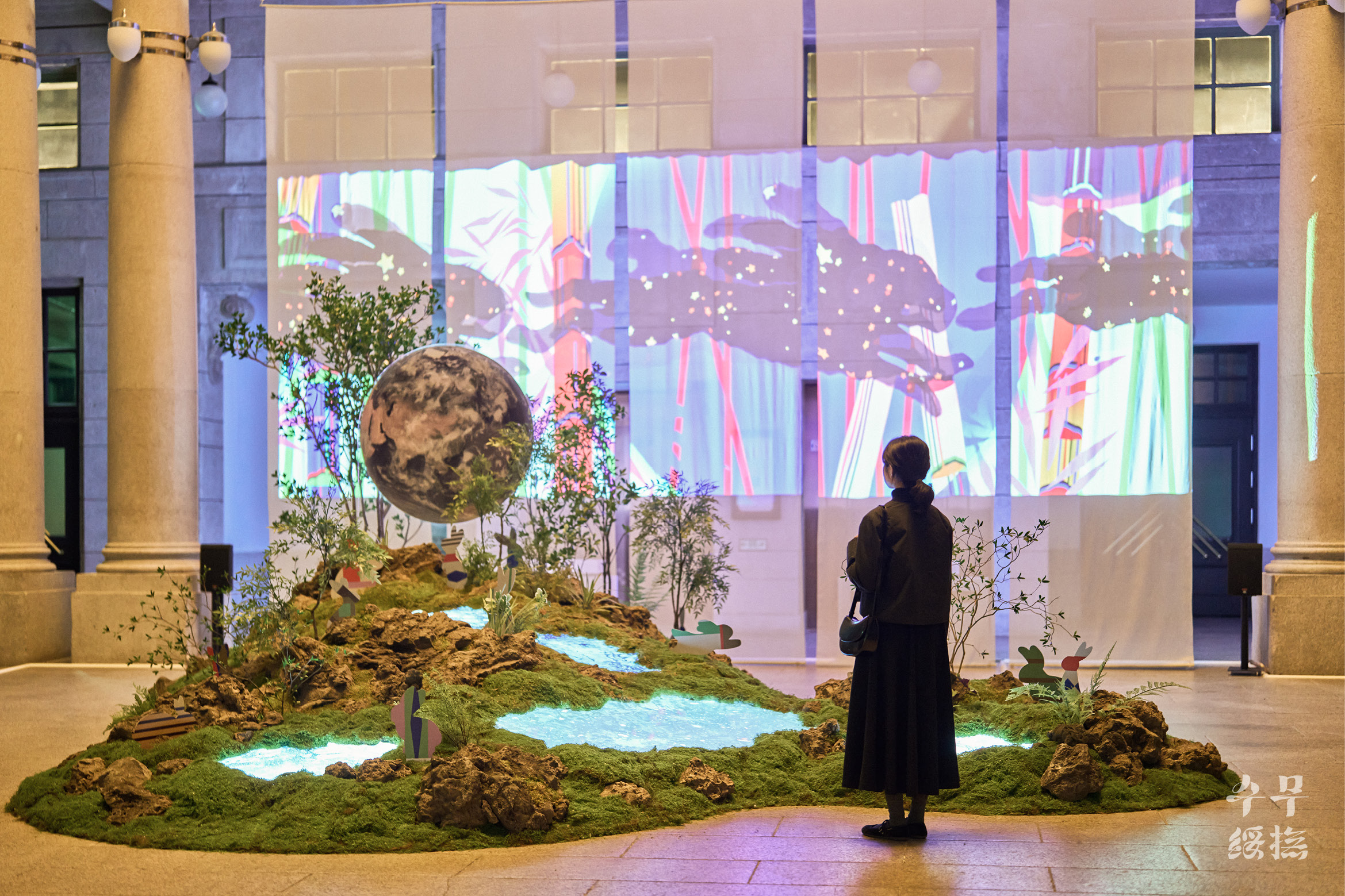 (지구에서 육안으로 관찰할 수 있는 달의 면적은 59%입니다. 즉 관찰할 수 없는 면적은 41%입니다.) 옛사람들은 달에 토끼가 살고 있다고 믿었습니다. 인류가 달에 착륙한 지 반세기가 지났지만 여전히 달을 올려다볼 때면 계수나무 아래 방아를 찧는 옥토끼를 먼저 떠올리곤 합니다. 이번 전시는 오랫동안 우리와 함께해 온’달’과 2023년을 상징하는 동물’토끼’로 시작을 알립니다. 달의 자전과 공전주기로 인해 지구인들은 평생 달의 앞면만 볼 수밖에 없다고 합니다. 여기에서 착안해 달의 뒷면에 녹음이 우거져있고 그곳 옹달샘에 물을 마시러 오는 토끼가 살고 있다는 작가의 즐거운 상상은 미디어 아트와 조경, 사운드, 조형물로 구현되었습니다.’이상한 나라의 앨리스’동화책에 나오는 흰토끼처럼 중앙홀의 옥토끼는 여러분에게 전시장 구석구석 전통문화로 떠나는 여정으로 손짓합니다. 이제 2023 뉴트로 페스티벌”오늘 전통” (Newtro Festival “TraditionNow” 2023)에서 오래오래 기억에 남을 전통문화의 가치를 탐색해 볼 차례입니다.