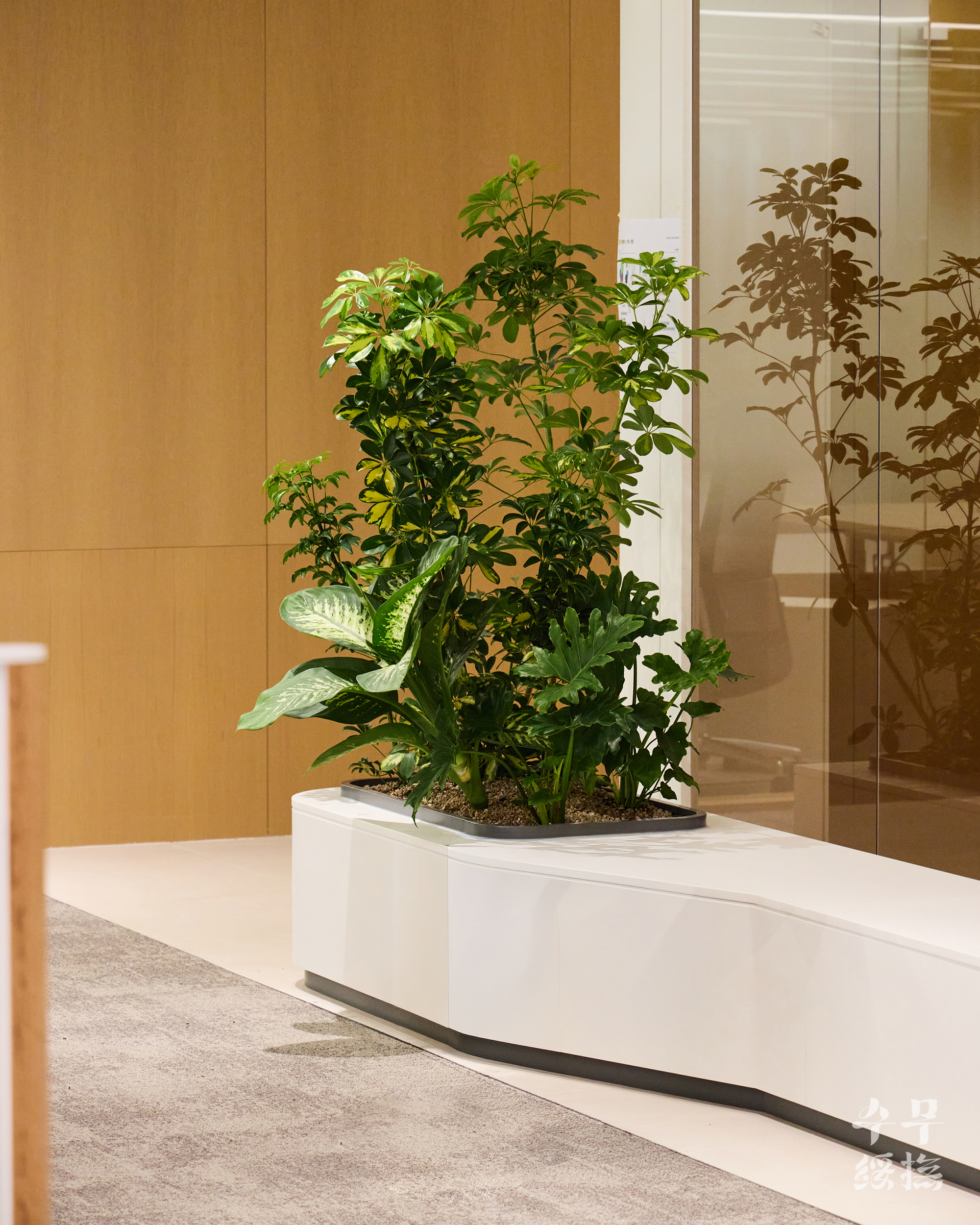 무엇보다 살아있는 식물을 다루는 일이기에, ‘지금의 아름다움’보다 ‘앞으로의 지속성’을 더 많이 고민했습니다. 시간이 지나도 단정한 형태로 볼륨감만 우아하게 차오를 수 있는 수종을 택했고 흙의 배합과 빛, 그리고 관리에 용이한 플랜터의 깊이를 고려하여 설계했습니다.